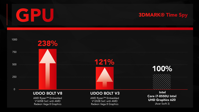 UDOO, the Italian manufacturer of ‘maker’ boards, launched their first Ryzen Embedded single board computer on Kickstarter today. The UDOO Bolt features unprecedented cpu and graphics power, never before seen in a single board computer.
